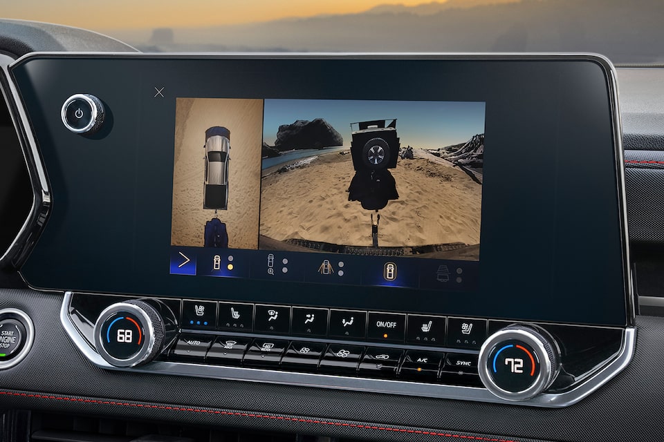 Colorado offers a best-in-class† 10 available camera views† to help you hit the open road with confidence. And thanks to the available segment-first underbody cameras offering a real-time forward- and rear-facing view beneath the truck, you can navigate rocky trails and other difficult terrain.